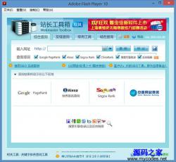 观其站长工具箱(WebmasterToolbox)是一个用Flash制作的站点综合信息查询工具,主要功能是查询某个站点的GooglePagerank、Alexa世界排名、Sogou指数、中国网站排名,以及在几大主要搜索引擎中的收录反向链接的情况,可以进行多个网站的批量查询,并最..